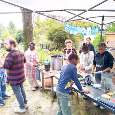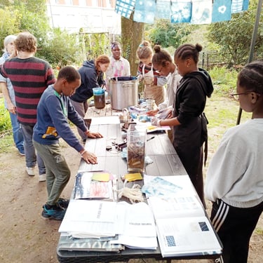 Les enfants ont découvert comment les plantes peuvent se transformer en couleurs et devenir de véritables teintures naturelles, un savoir-faire à la fois écologique, artisanal et poétique.